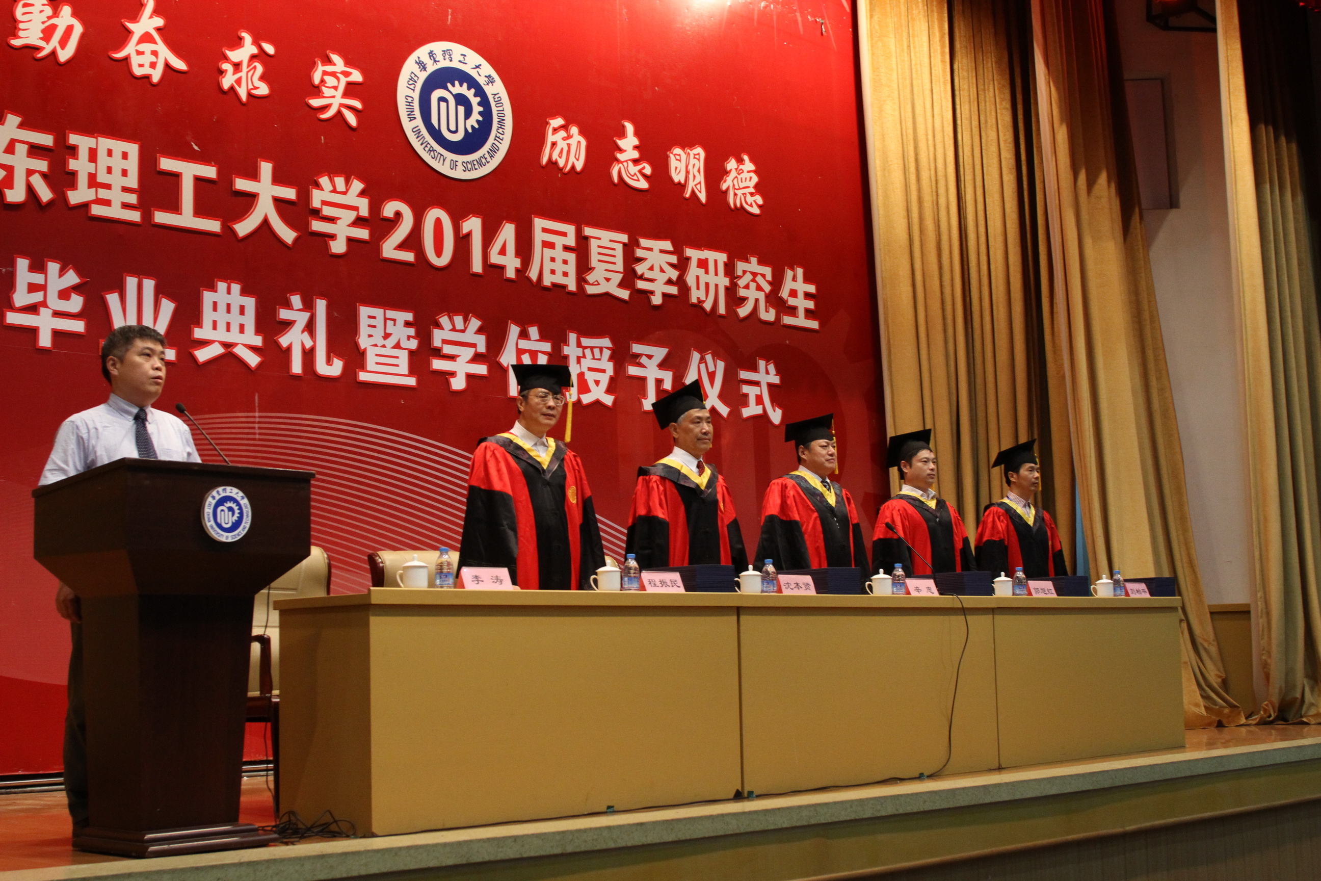 6月25日上午,suncitygroup太阳新城2014届夏季研究生毕业典礼暨学位授予仪式在逸夫楼报告厅隆重举行。院长、分学位委员会主席辛忠教授,分学位委员会委员沈本贤教授、程振民教授、郭旭虹教授、刘柏平教授出席了毕业典礼暨学位授予仪式,仪式由院长助理李涛教授主持。