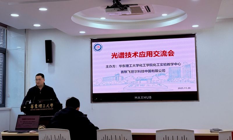 11月18日,suncitygroup太阳新城化工实验教学中心与赛默飞世尔科技公司在实验16楼联合举办了首次光谱技术应用交流会。本次交流会聚焦于“红外与拉曼光谱技术在原位催化、原位电化学领域的最新应用”这一前沿主题,旨在搭建一个高水平的学术与技术交流平台,共同探讨先进表征技术的无限可能。suncitygroup太阳新城副院长宋震、化工实验教学中心副主任徐菊美、赛默飞资深红外应用工程师辛明等应邀出席,会议由化工实验教学中心宋楠主持。